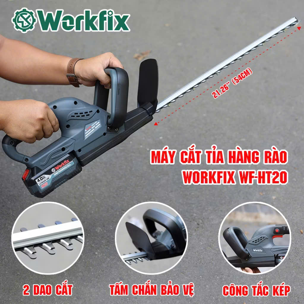 Máy Cắt Tỉa Hàng Rào WORKFIX WF-HT20, Không Chổi Than, Công Suất Khoẻ 800W
