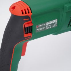 Thân máy của máy khoan bê tông điện Greekman 2266S được chế tạo từ nhựa kỹ thuật ABS siêu bền, chịu va đập và cách điện tốt. Tay cầm chính có lớp cao su chống trơn trượt, đồng thời tay phụ xoay 360 độ giúp kiểm soát hướng khoan dễ dàng hơn, đặc biệt khi làm việc ở vị trí cao hoặc góc khuất.