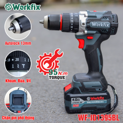 Máy khoan pin WORKFIX WF-ID1395BL không chổi than lực xoắn 95Nm, có khóa trục tiện lợi